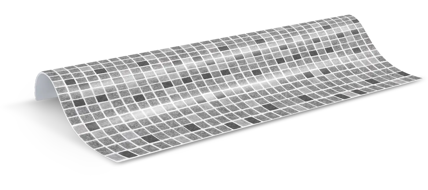 Grå mosaik är ett modernt alternativ som ger ett fräscht vatten med mjukt shimmer. Ett tryggt val om du vill ha en stilren look men ändå lite mer liv än en enfärgad liner.