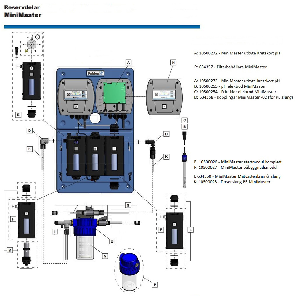 Reservdelar till system för automatisk klor- och pH-dosering. Här hittar du pumpar, sensorer och tillbehör som håller din utrustning exakt och driftsäker under hela säsongen.