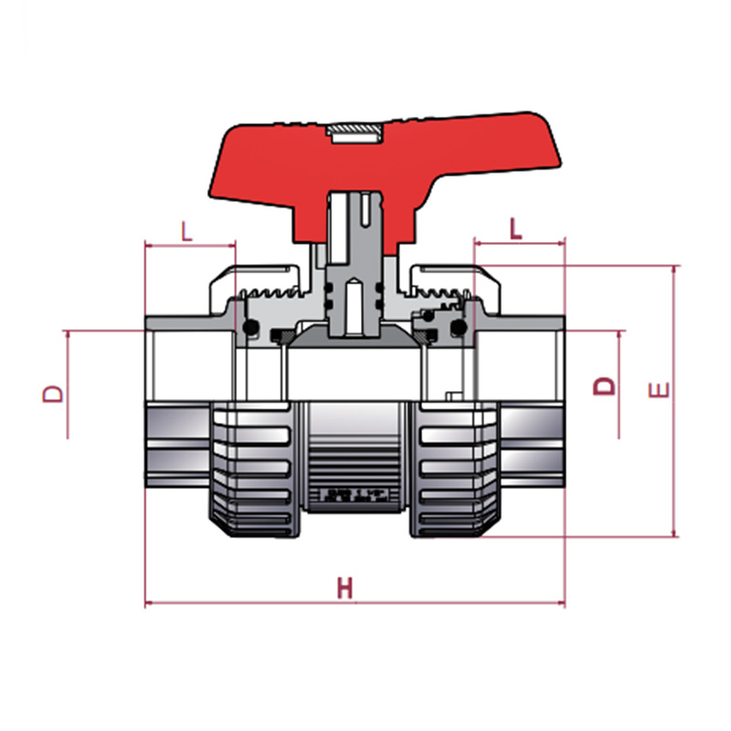 Tvåvägs kulventil med limanslutningar för på- och avstängning av flöde i poolens rörsystem. Cepex.