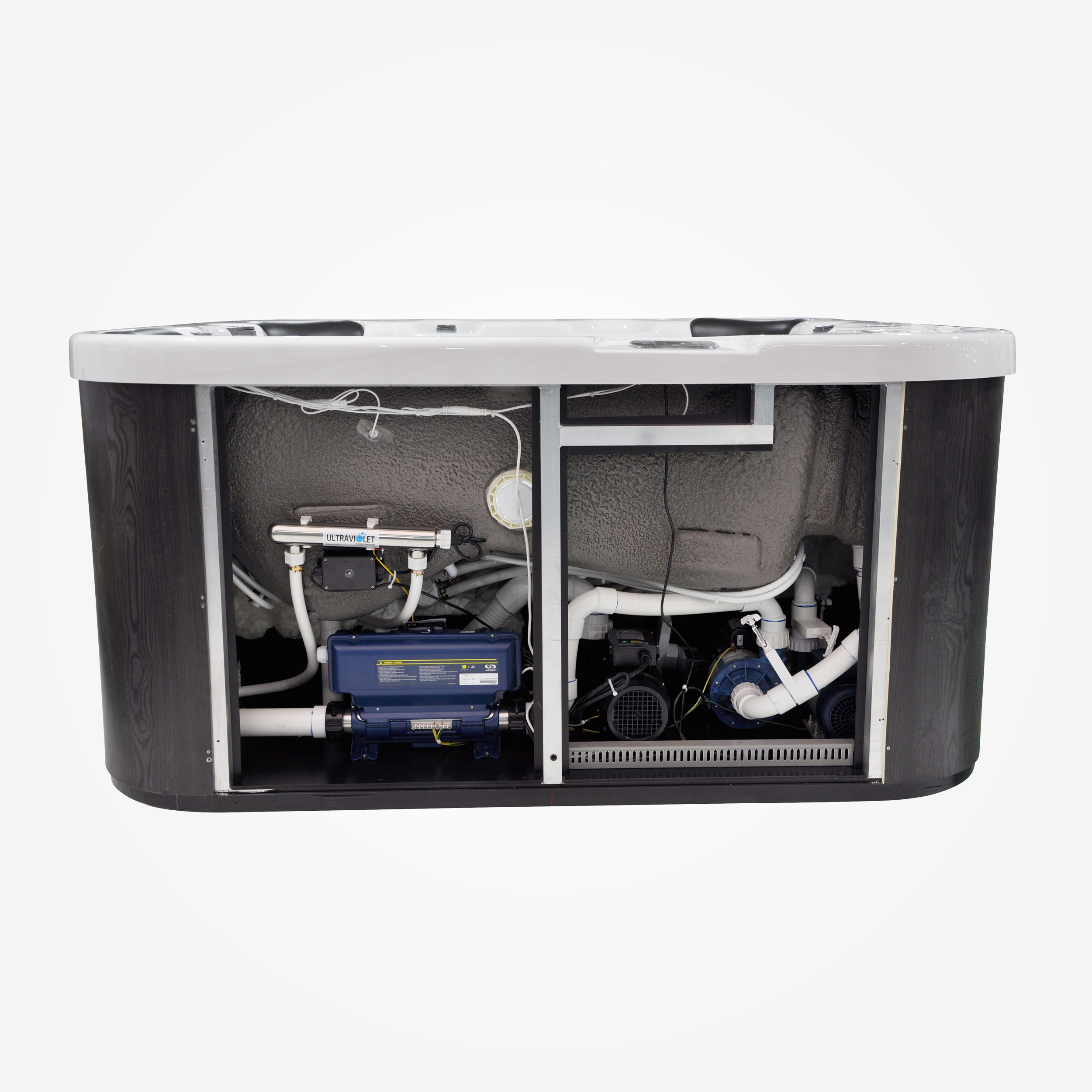 Spabadets teknikutrymme är placerat på samma sida som displayen.