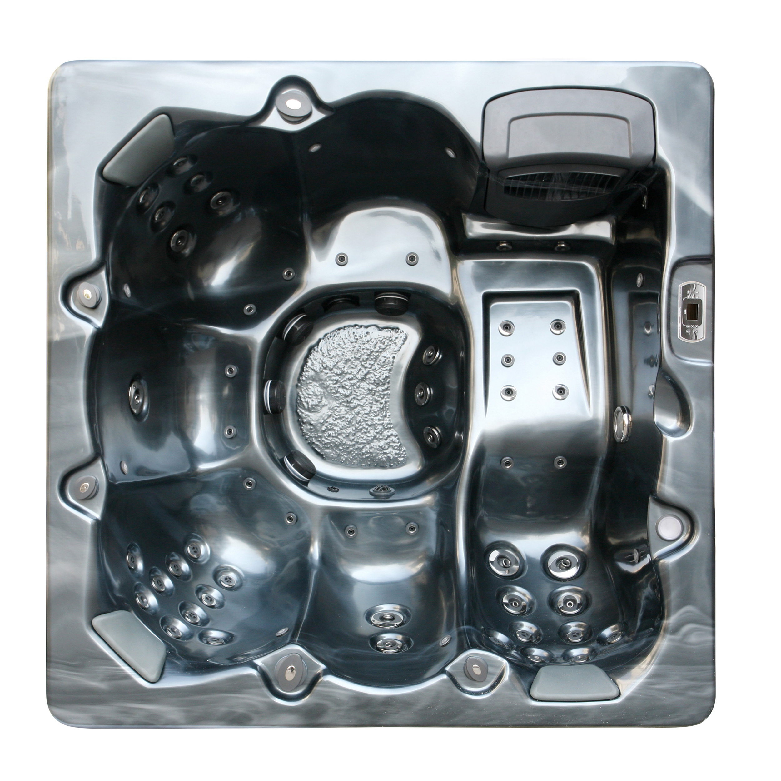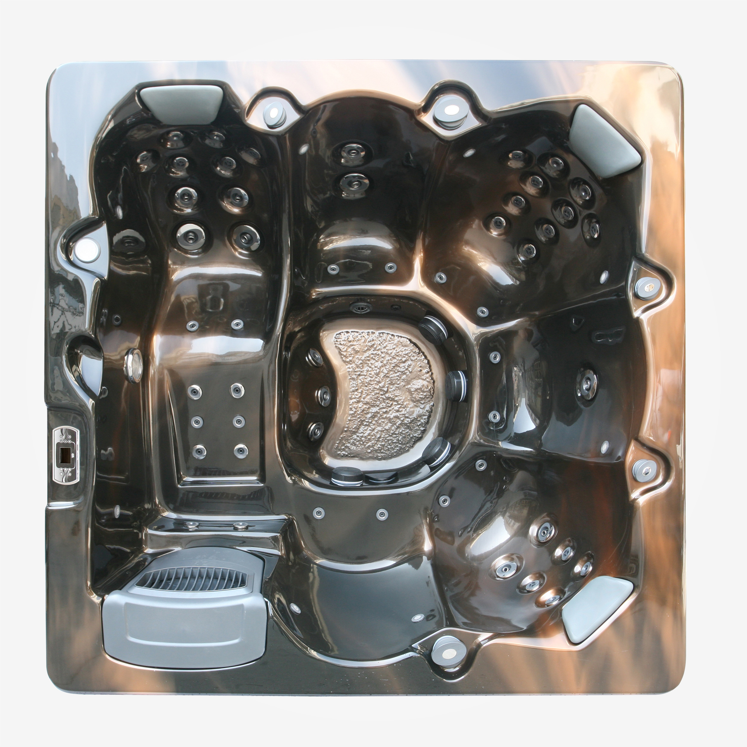 Spabadets teknikutrymme är placerat på samma sida som displayen.