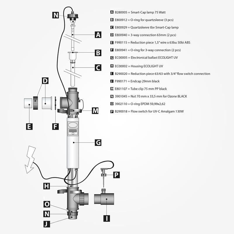 PoolKungen UV Ecolight UV-C V2 Art nr 10400036 Moms ingår med PoolKungens egenutvecklade UV-rening. Ecolight UV-C eliminerar bakterier och microorganismer vilket gör att du minskar klorbehovet i poolen med upp till 80% – oavsett om du har klor eller saltvatten Läs mer Kampanj! Lägg i varukorgen Finns i webblager. Leveranstid . Beställningsvara. Leveranstid . UV Ecolight UV-C V2 Till toppen Produktinformation UV Ecolight UV-C V2 – renare poolvatten med mindre kemikalier UV Ecolight UV-C V2 är den senaste generationens UV-renare för pool, framtagen för att ge ett effektivt, miljövänligt och underhållssnålt badvatten. Tack vare det robusta höljet i rostfritt stål och den integrerade timern är denna modell ett smart val för både nya och befintliga pooler – oavsett om du har klor eller saltvatten. Med UV Ecolight UV-C V2 får du inte bara renare vatten – du minskar också behovet av klor och andra kemikalier med upp till 80 %, vilket ger en skonsammare och mer hållbar poolmiljö för hela familjen. Fördelar med UV Ecolight UV-C V2: Kristallklart vatten: UV-ljus eliminerar bakterier, virus och alger effektivt Mindre kemikalier: Minskar behovet av klor och kemikalier med upp till 80% Bättre vattenkvalitet: Bidrar till klarare vatten med vacker lyster Lägre kostnader: Mindre kemikalier och färre beläggningar betyder lägre driftkostnader Rostfritt stålhölje: Tåligt och korrosionsbeständigt, passar även saltvattenpooler Integrerad timer: Visar när det är dags att byta UV-lampan för bibehållen effekt Högre UV-effekt: Upp till 35 % bättre effekt tack vare reflekterande insida Enkel installation: Flera monteringsmöjligheter och flexibla anslutningar Teknisk specifikation: Effekt: 75 W Rekommenderat flöde: 16 m³/h UV-prestanda: 30 mJ/cm² vid rekommenderat flöde Maximalt flöde: 23 m³/h Maximalt arbetstryck: 2 bar Till toppen Dokument Montering av Ecolight Del 1 Montering av Ecolight Del 2 Ecolight Sprängskiss med Art nr Till toppen Rekommenderade tillbehör PoolKungen Utbyteslampa Ecolight - Reservdel A Ecolight UV-C utbyteslampa som minskar klorbehovet med upp till 80%. 1 950 SEK Lägg i varukorgen