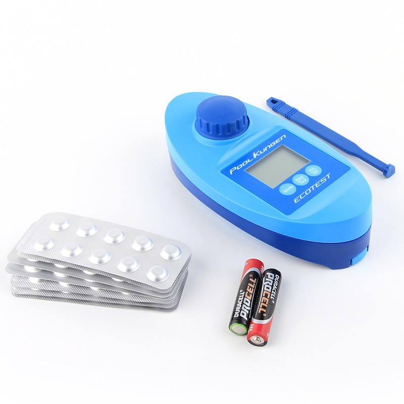 PoolKungen Ecotest digitalmätare för vattenvärden Art nr 40400008 Moms ingår med Enkelt, effektivt och noggrant mätsystem som hjälper dig att hålla koll på dina vattenvärden i poolen och spabadet. Mäter fritt klor, bundet klor, totalt klor, alkalinitet, pH, cyanursyra. Läs mer Kampanj! Lägg i varukorgen Finns i webblager. Leveranstid . Beställningsvara. Leveranstid . Ecotest digitalmätare för vattenvärden Till toppen Produktinformation Riktvärden Hämtat från Folkhälsomyndigheten vid pH-värde 7.4 och pooltemperatur upp till 35°C. Fritt klor: 0.5-1.6 ppm (mg/l) Bundet klor: 0-0.4 ppm (mg/l) Totalt klor: Max 2.0 ppm (mg/l) Cyanursyra: 30-50 ppm (mg/l) Salthalt: Max 250 ppm (mg/l) (0.025%) om poolutrustningen är rostfri Information om pH-värde PH-värdet är ett mått på vattnets surhetsgrad och skalan går från 0-14 där pH 7 är neutralt. Högre än 7 ger basiskt vatten och lägre än 7 ger surt vatten. Optimalt pH-värde i en pool är 7.2-7.6. pH högre än 7 = basiskt vatten pH lägre än 7 = surt vatten pH 7.4 = optimalt Högt pH-värde (basiskt vatten) ger: Sämre klordesinfektion Hudirritation Kalkutfällning Grumlighet Lågt pH-värde (surt vatten) ger: Aggressivt vatten, vilket skadar poolens maskinella komponenter Irriterade ögon och slemhinnor Skador på poolduken Riktvärde är 7.2 - 7.6. pH-värdet sänks med pH-minus (natriumbisulfat) och höjs med pH-plus ( natriumkarbonat).