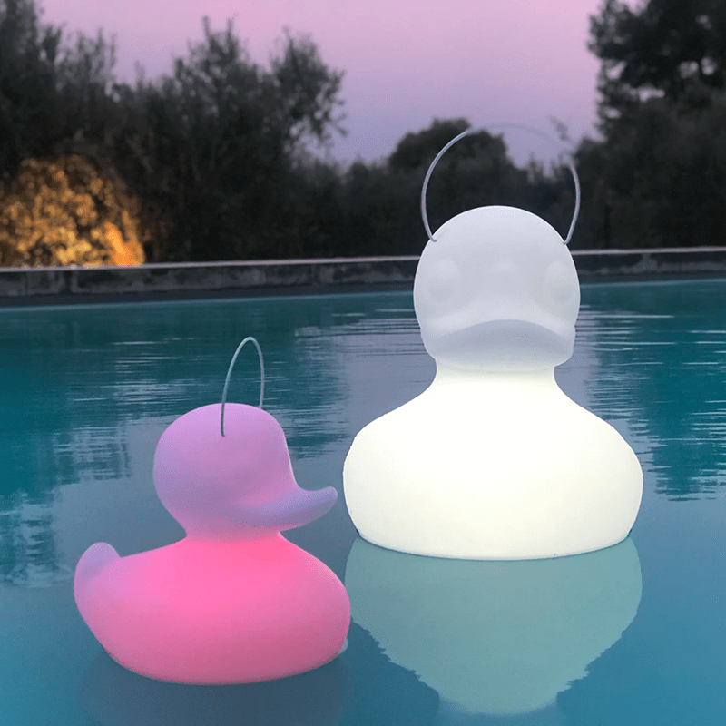 Flytande lampa - Anka XL Art nr 10900019 Moms ingår med Extra stor flytande lampa i form av en badanka med 7 olika färger Läs mer Kampanj! Lägg i varukorgen Finns i webblager. Leveranstid . Beställningsvara. Leveranstid . Flytande lampa - Anka XL Till toppen Produktinformation Vår flytande lampa - The DUCK-DUCK Lamp XL -White, är en design på den klassiska badankan, men här i ett superstort format med flerfärgad lampa - hela 7 olika färger! Med det avtagbara metallhandtaget kan ankan se ut om en lykta. Den integrerade lysdioden laddas med den medföljande laddningsbasen och lampan kan placeras flytande i poolen, vid spabadet, i barnrummet eller utomhus i trädgården. Vår anklampa finns i två olika storlekar och detta är den största - med en höjd på 54 centimeter. Fjärrkontrollen som medföljer har en räckvidd på 5 meter. Designas i Spanien. OBS! Lampan måste alltid vara helt torr före laddning. Storlek: 54 cm hög, 50 cm bred , 3 kg Energiklass: A++ Material: Plast Ljuskälla: LED - 120 Lumen Färg: Vit Densitet: IP 68